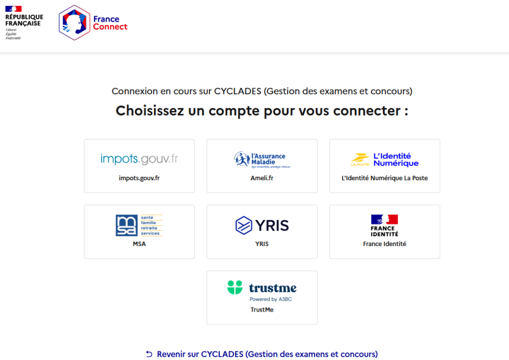 Si mon compte n’est pas associé à FranceConnect, CYCLADES me propose sur cette page de lier mon compte :