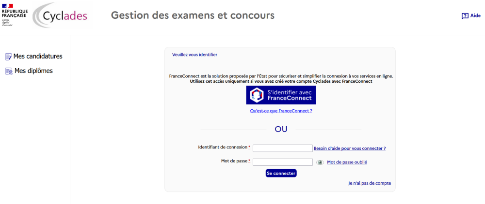 Ce portail candidat est commun à tous les candidats qui souhaitent s’inscrire aux examens ou aux concours gérés dans Cyclades.