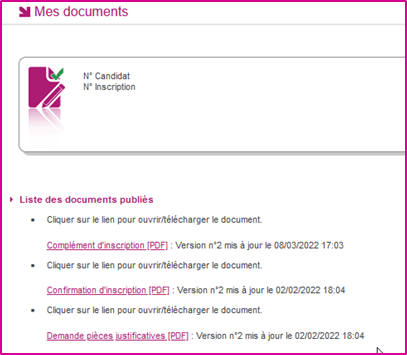 Le document « complément d’inscription » est généré et disponible dans mon menu « Mes documents ».